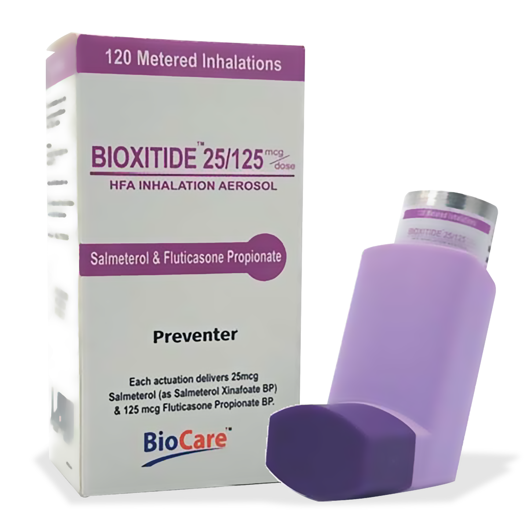 | Packaging | : Aluminium canister of 120 metered doses in a carton box |