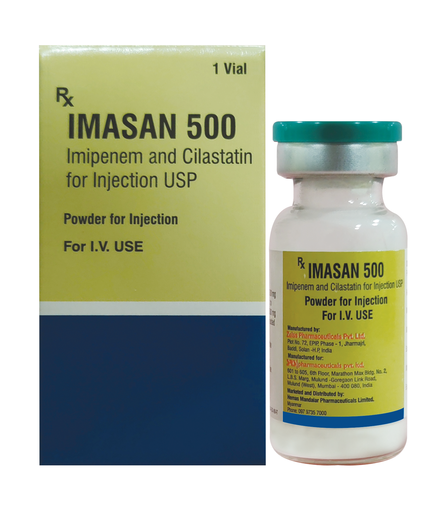 | Chemical composition | : Each vial contains Imipenem USP eq.to anhydrous Imipenem 500mg, Cilastatin Sodium USP eq.to Cilastatin 500mg Sodium Bicarbonate USP added as buffer. |
